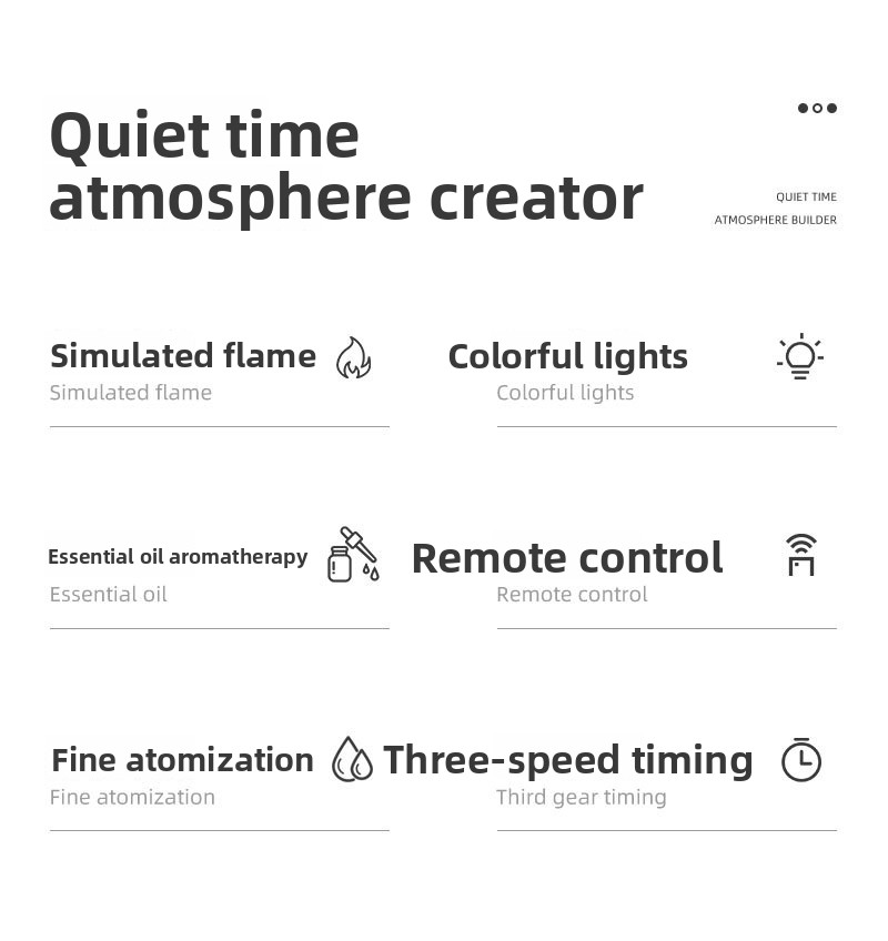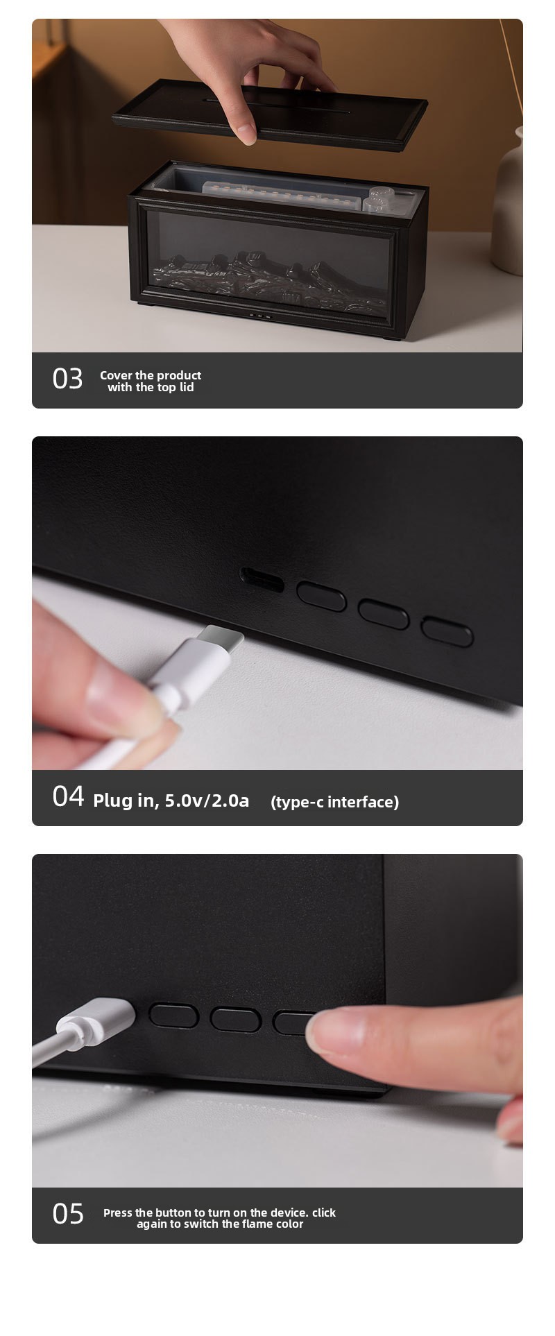 •Flame Humidifier with Aromatherapy | 3D Fireplace Effect